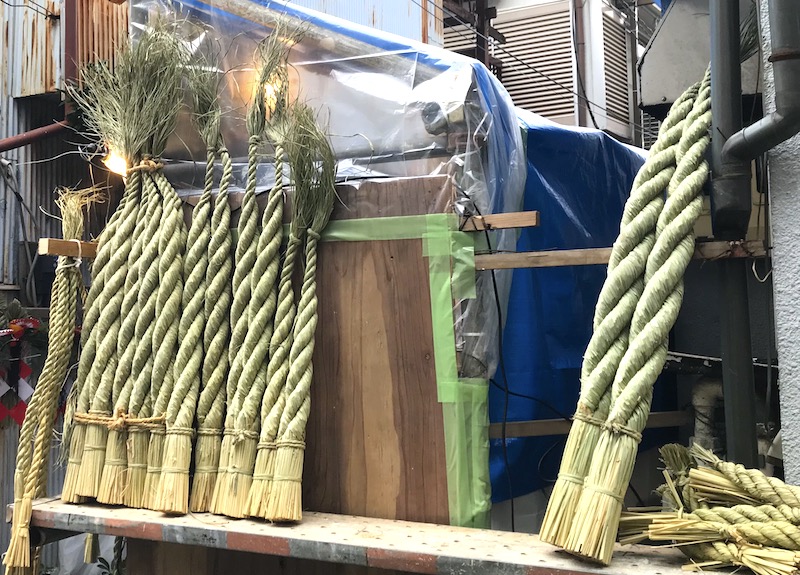 この時期ならではの、しめ縄飾り&門松作りを見かけます。