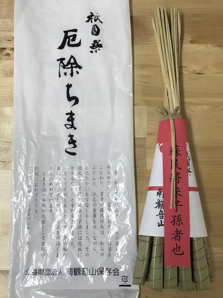 祇園祭のちまきが送られてきました。