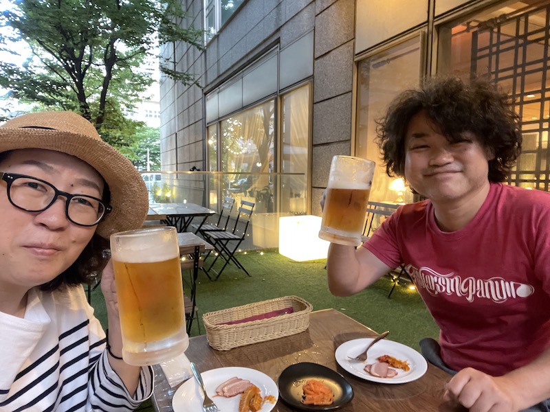 近所のテラスのあるご飯屋さんにビールを飲みに行きました。