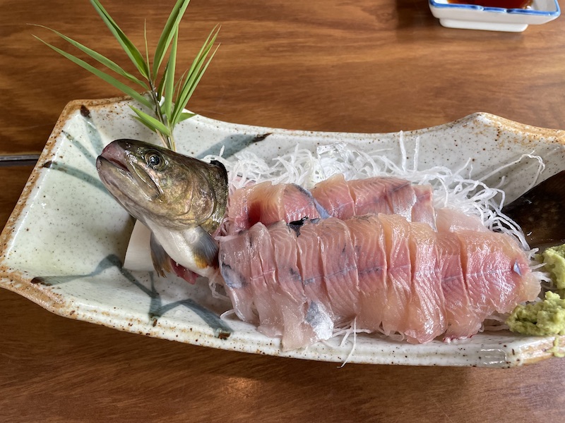 水の美味しい秩父ならではのイワナの活き造りをいただきました。