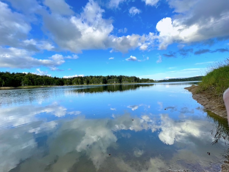 風が止むと時折、湖面が鏡のように青空や雲が映るので見惚れてしまいます。↓