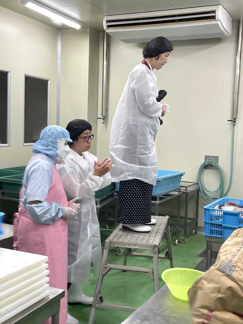 衛生着に着替えてスタッフさんの邪魔にならぬように、カメラマンのお手伝い。